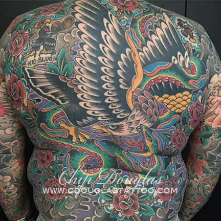 healed photo of this eagle snake backpiece on my favorite Australian. thanks again Peter